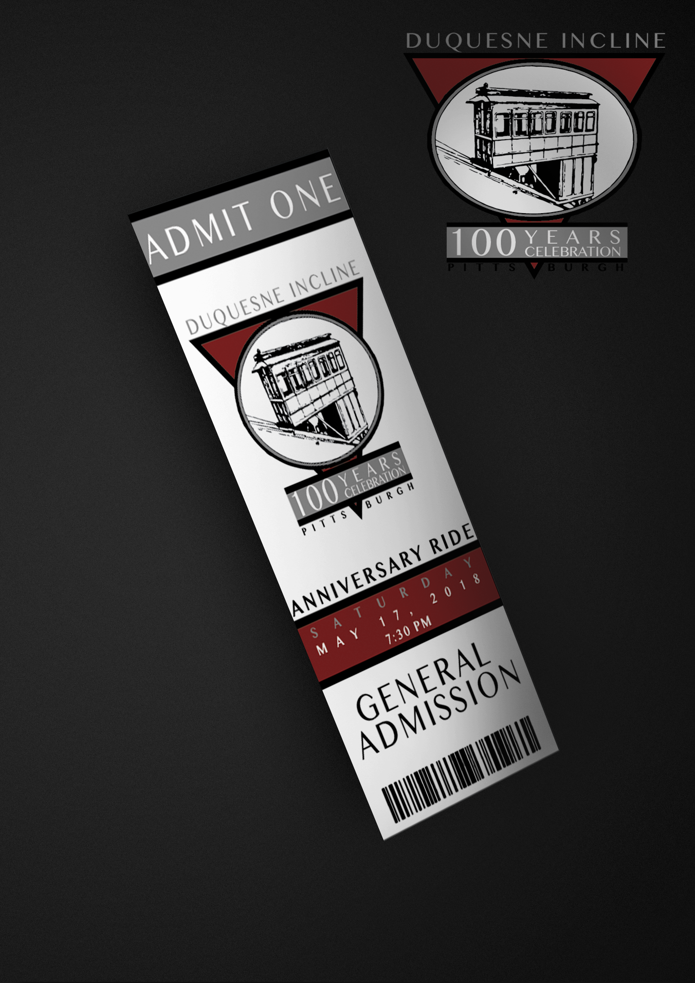 Imagining logo + ticket for the 100th year of the Duquesne Incline in Pittsburgh (it's older then that, this was a school project)