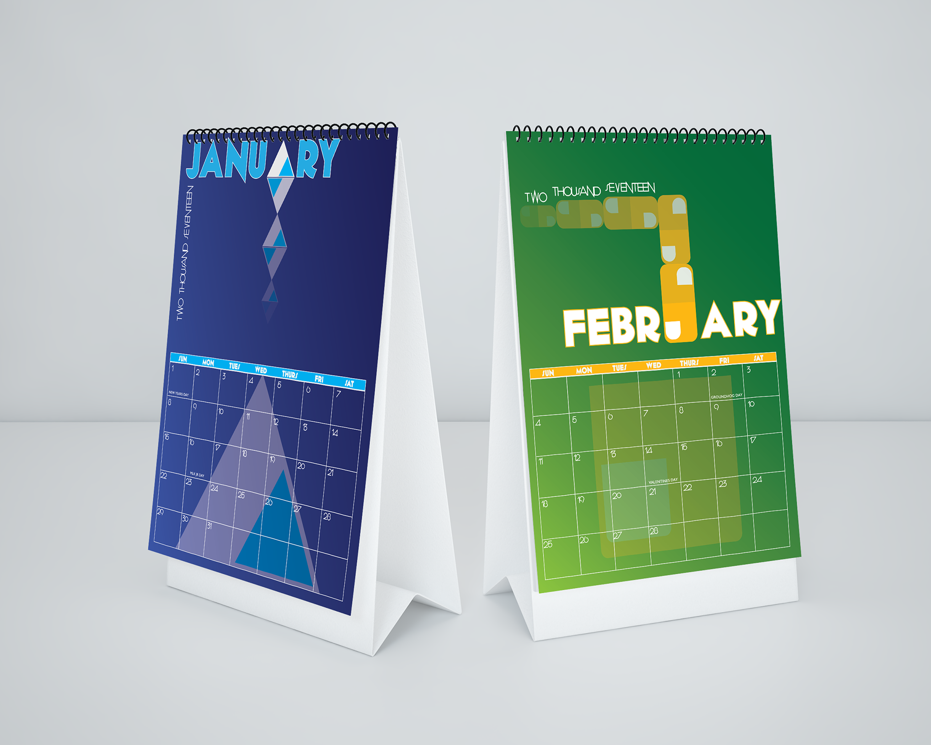 2017 12-Month Wall Calendar based off of Josef Albers "Homage to the Square" 4 months pictured.