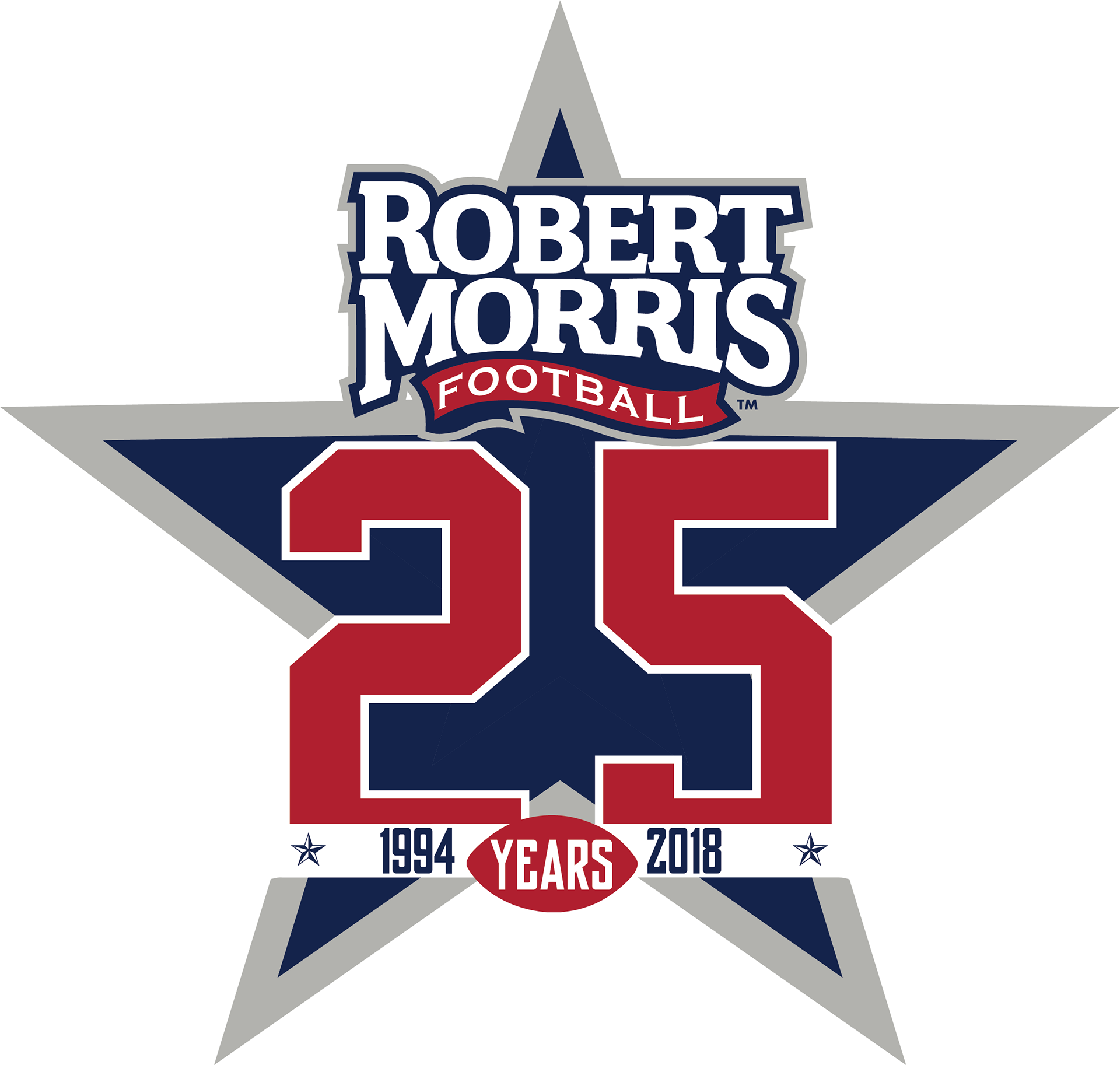 Logo intended to be used for Robert Morris University Football's 25th anniversary in 2018.